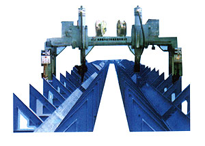 双机头龙门式焊机可同时完成两件H型钢的船形位置焊接,生产效率高。也可用于箱形梁角焊缝的焊接,焊接变形小。