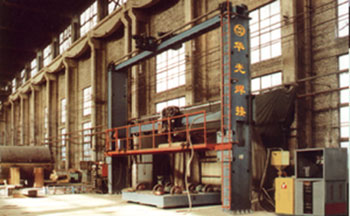 辽宁渤海造船厂大型船体自动化焊接生产线。包括Φ10m自动焊接操作机,200t锥体焊接滚轮架,200t防轴向位移柱体焊接滚轮架。