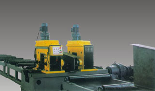 该系列矫正机用于矫正H型钢的翼板在与腹板焊接过程中产生的上翘热变形,采用由上辊装置和传动辊构成杠杆原理为基础,当被矫翼缘板通过时产生弯曲变形,由于预置力大于翼板材质的屈服点,使弹性回复系数变小,从而达到矫正目的。该系列设备根据上辊装置输出矫正力的不同分为机械矫正和液压矫正两种方式,分别用于不同板厚和强度等级的翼板矫正。